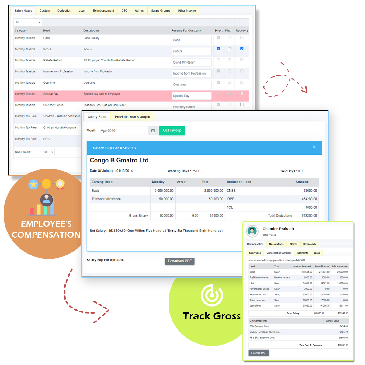 • Track Gross and Cost to Company components separately giving a clear idea of take home to the employee.